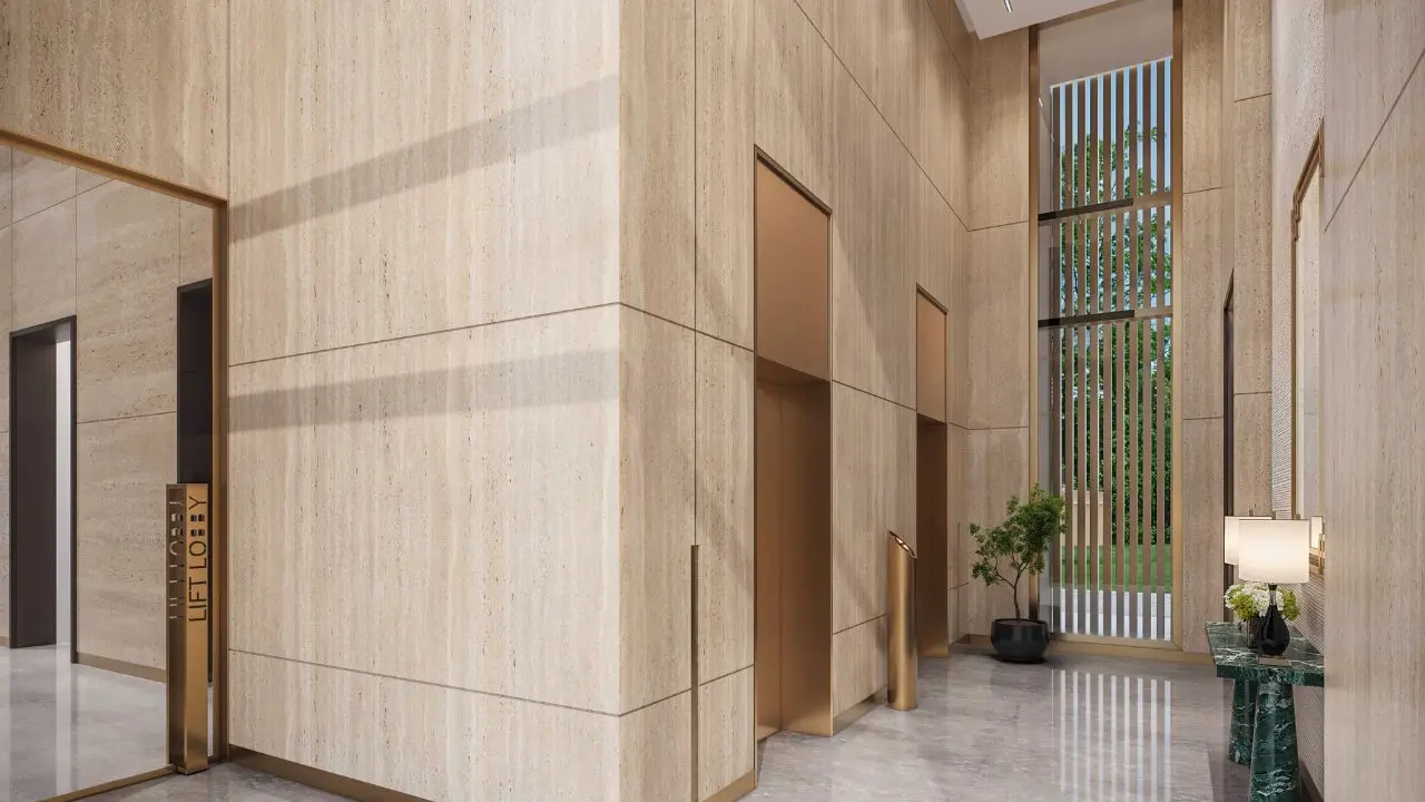 - Living / Dining / Bedrooms: Imported Italian marble flooring for an elegant finish.