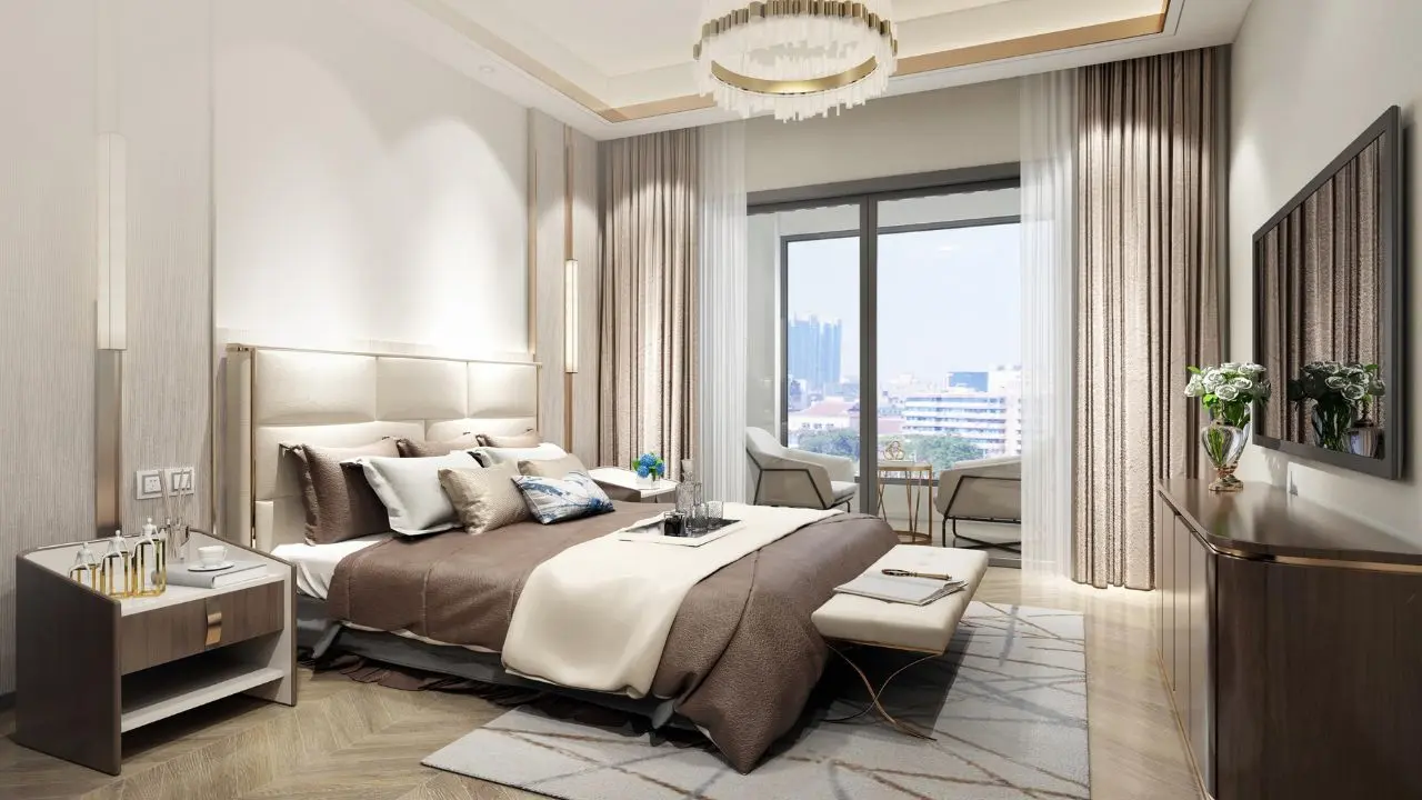 - Expansive balconies offering panoramic city and garden views.