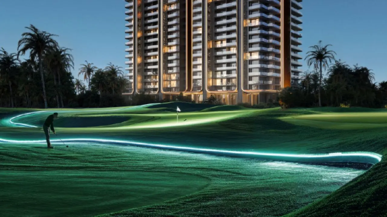 - Iconic glass façade towers with panoramic golf and skyline views