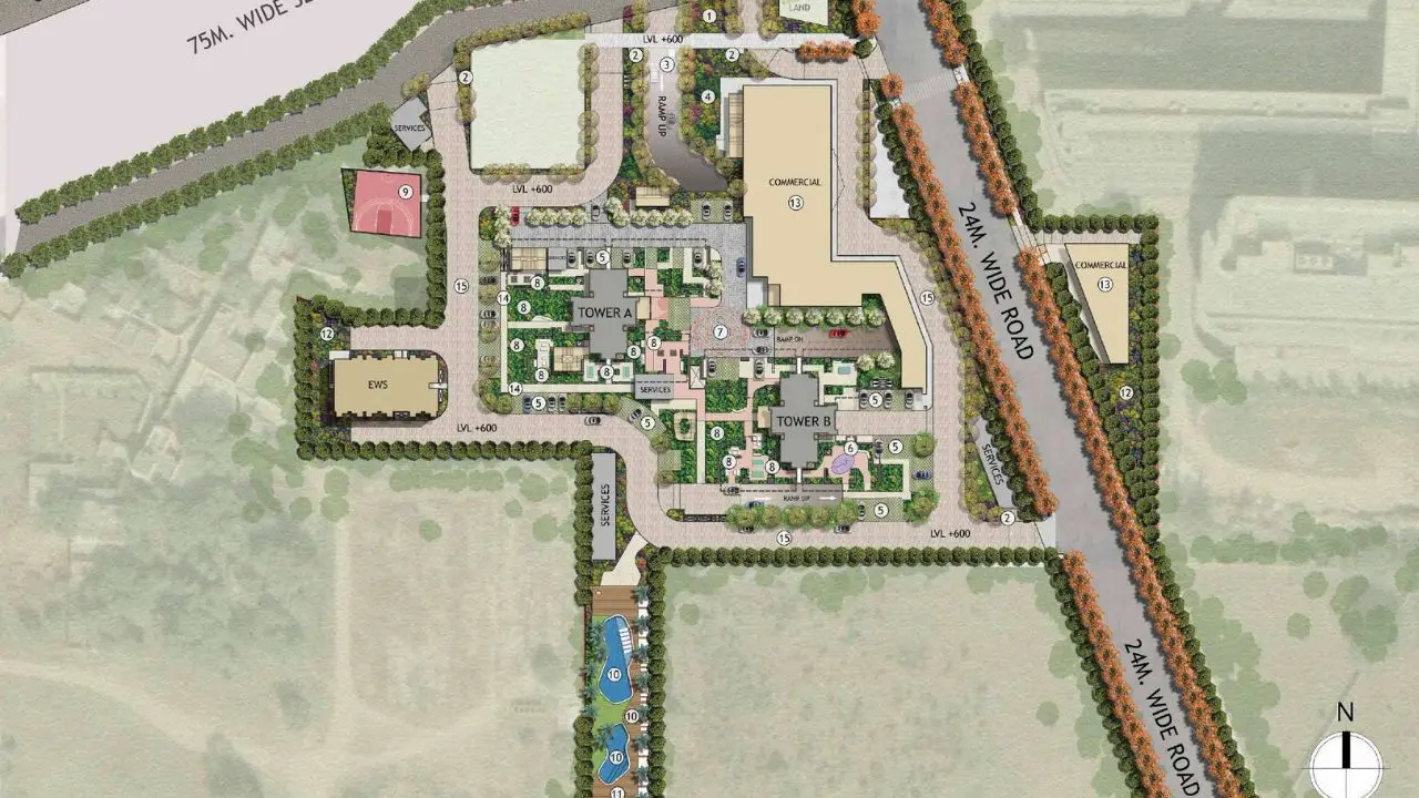 Signature Twin Tower DXP is spread across 5 acres, with 2 high-rise towers (G+45 floors) and a total of 336 luxury residences, ensuring low-density and exclusive living.