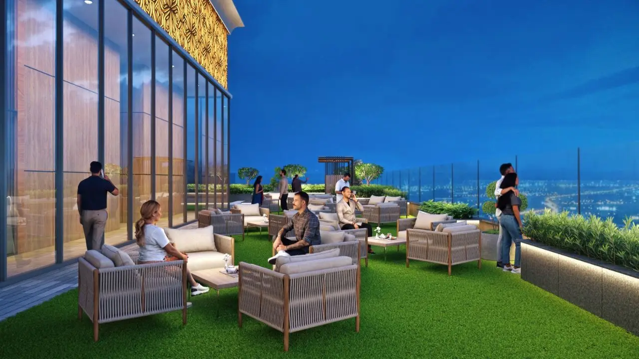 The Sky Terrace—also called the SkyHub—is located 475 feet above the ground and connects all four towers. It includes an open-air pool, yoga deck, lounge zone, and observatory, offering unmatched skyline views.
